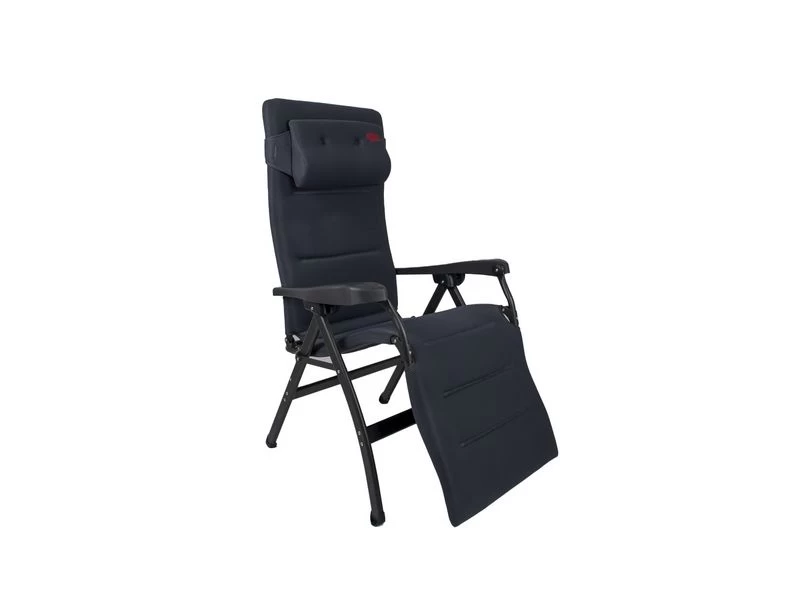 Een zeer luxe en comfortabele ergonomische relaxstoel met hoofdkussen. Deze stoel biedt maximaal comfort doordat de stoel traploos verstelbaar is. Daarnaast is deze stoel voorzien van een gepolsterde 3D stof welke is bevestigd door middel van elastiek. De comfortabele vulling van deze stof is extra luchtdoorlatend en houdt geen vocht vast. Hierdoor is deze stoel sneller droog dan andere stoelen met een traditionele schuimvulling. Daarnaast zorgt de afwerking voor een stijlvolle uitstraling. Zowel de rugleuning als de armleggers zijn ergonomisch gevormd en de is stoel voorzien van een remsysteem om de stoel in iedere gewenste positie te fixeren. De stoel is voorzien van een geanodiseerd H-frame voor extra stabiliteit en stevigheid. De stoel heeft een extra brede, een extra diepe en een extra hoge zit. Ingeklapt is deze stoel zeer compact en daardoor gemakkelijk mee te nemen in de meegeleverde opbergtas.
